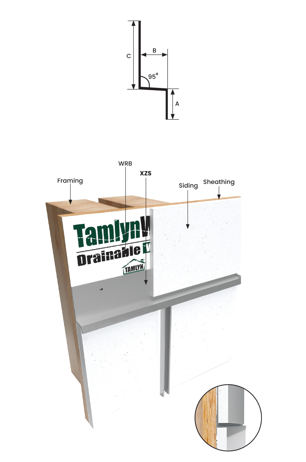 NOTE:ย Do not install XtremeTrimยฎ Basic Horizontal Z on horizontal applications where the exterior flange can catch/hold water.