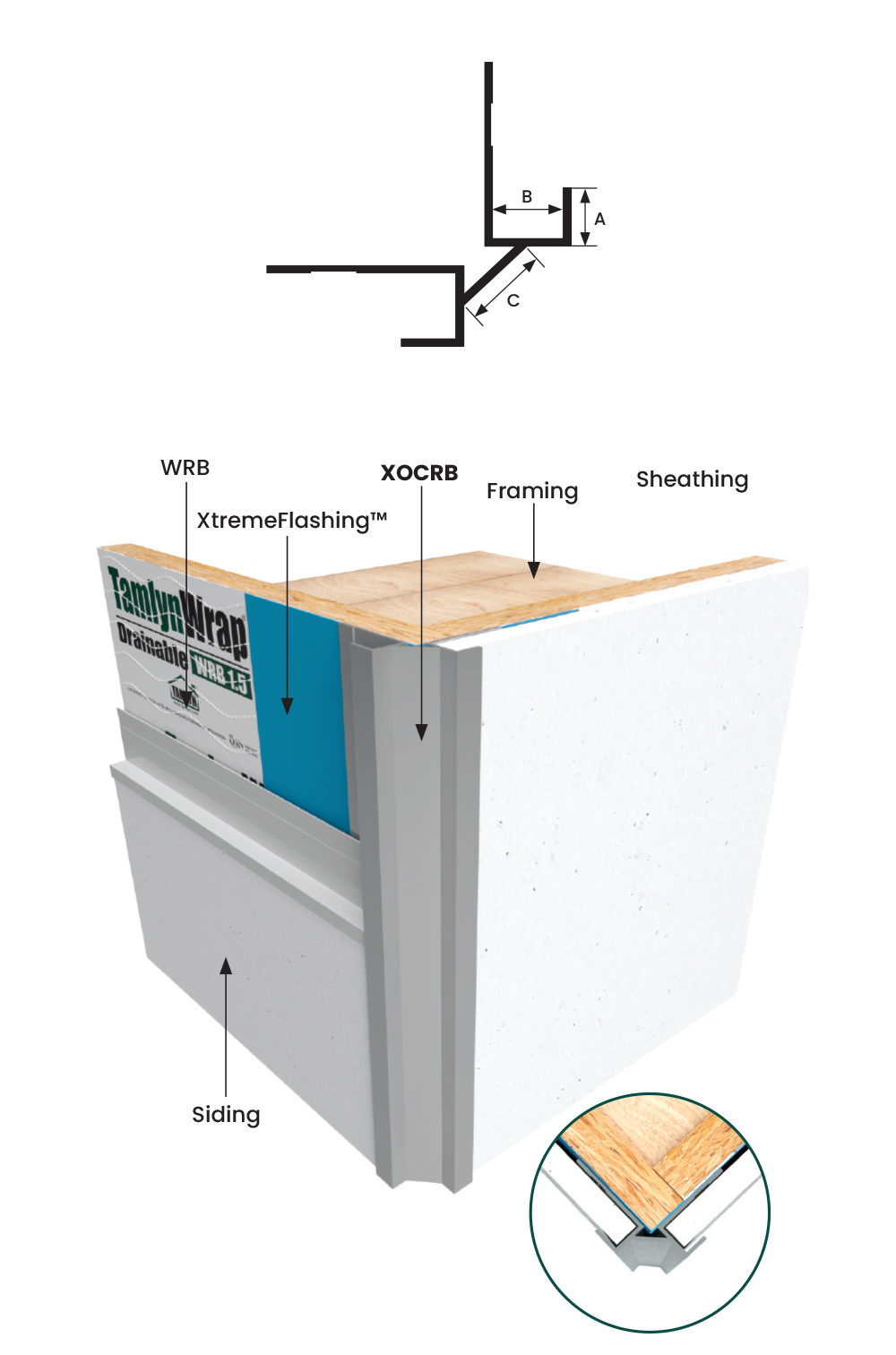NOTE:ย Do not install XtremeTrimยฎ Blunt Panel Reveal Outside Corner on horizontal applications where the exterior flange can catch/hold water.