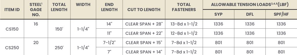 4. Allowable tension loads are based on Southern Pine (SYP) with a specific gravity on 0.55, Douglas Fir-Larch (DFL) with specific gravity 0.50, and Spruce-Pine-Fir (SPF) or Hem-Fir(HF) with specific gravity of 0.42.