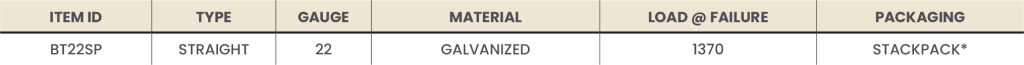 PACKAGING: Corrugated wall ties available in Stackpackยฎ pioneered by Tamlyn (lined up tightly in box) or bulk (loose in box). Suppliers can sell stackpack by the sleeve or even by the piece count (250 or 500) and store 5 pallets on top of each other. Also available in retail pack of 100.