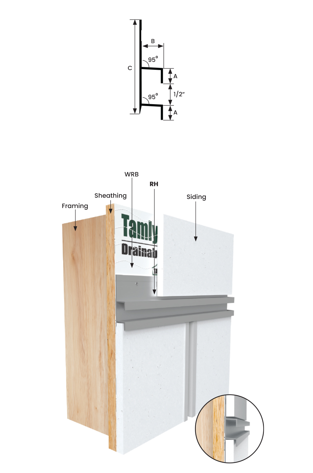 The Horizontal Reveal is a profile that compliments the XtremeTrimยฎ Vertical Reveal. Patented retention leg on back prevents flexing with expansion.