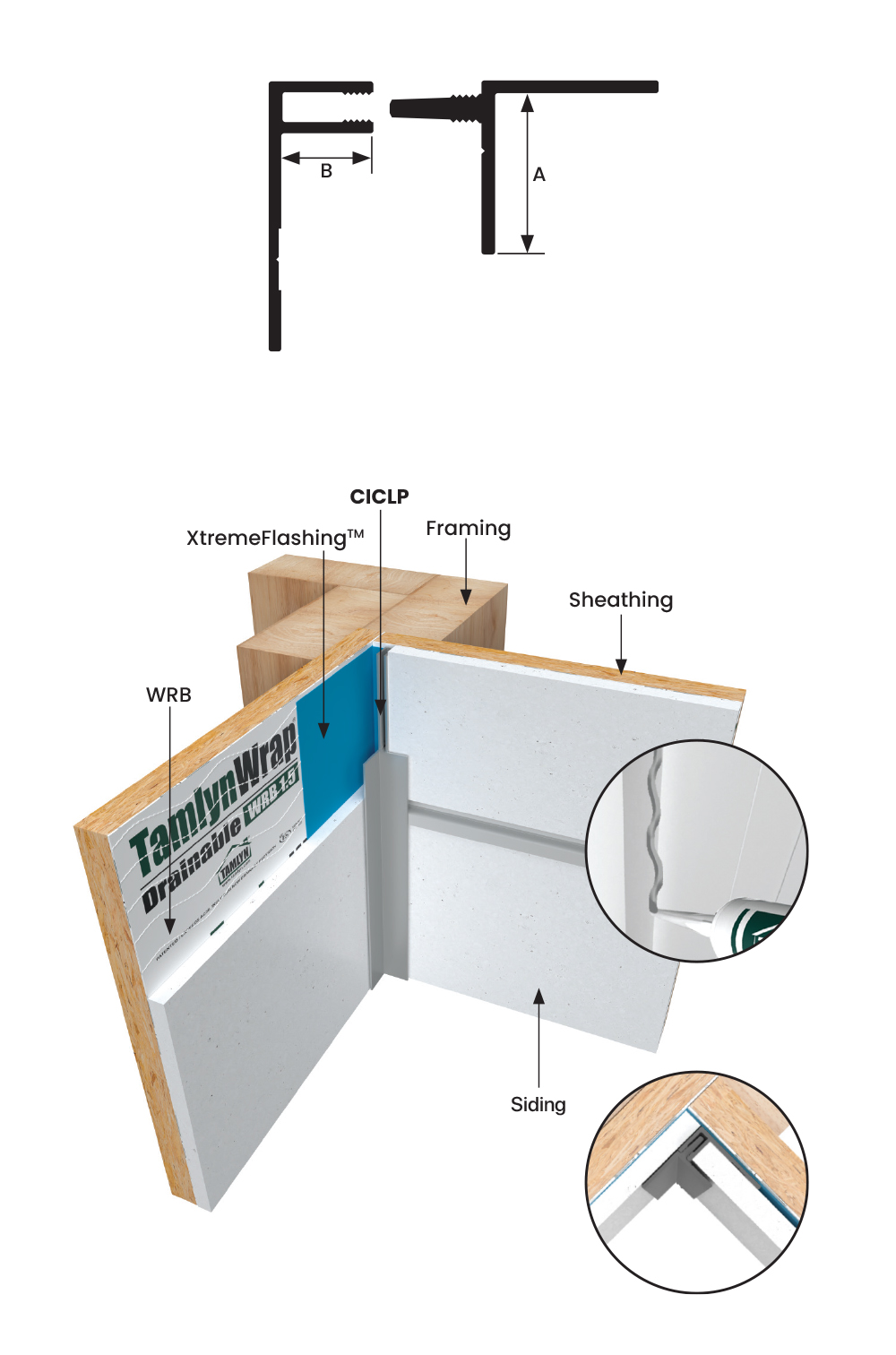 Minimal face produces a clean, pleasing, durable inside corner for siding panels. The two-piece design permits application of the base part first and then installation of the cover cap at a later time. In tight fit situations this may be more convenient than using the standard inside corner. However, due to the natural expansion and contraction of aluminum, all two piece caps must be secured by adhesive.