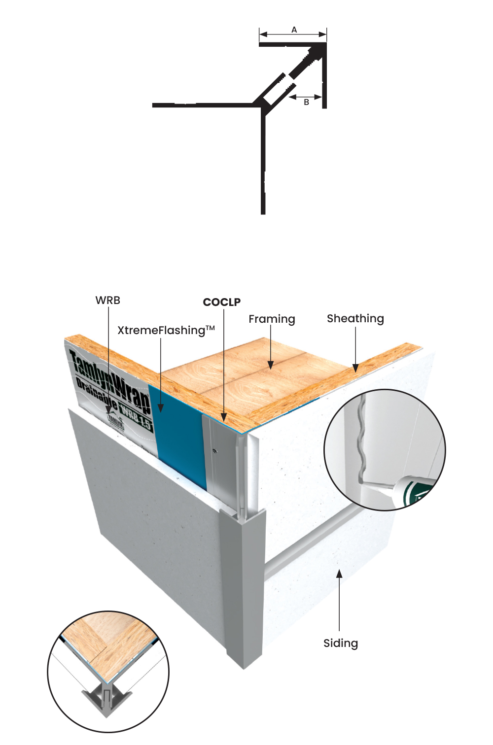 NOTE:ย Do not install XtremeTrimยฎ Low Profile Outside Corner on horizontal applications where the exterior flange can catch/hold water.