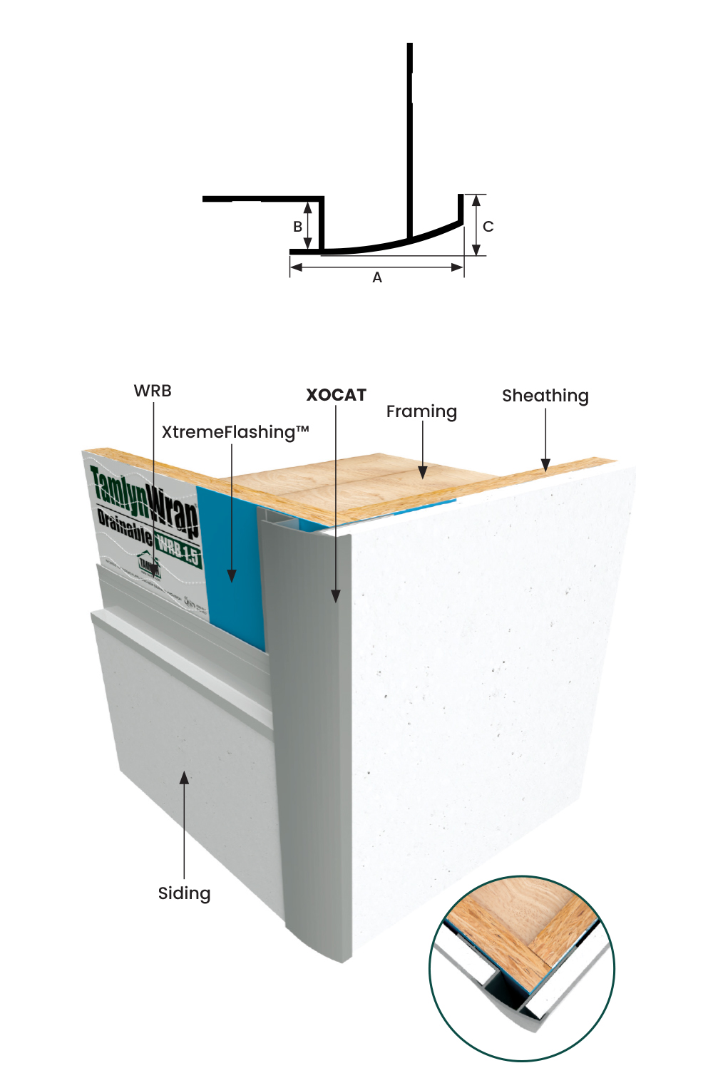 NOTE:ย Do not install XtremeTrimยฎ Panel Asymmetrical Tapered Outside Corner on horizontal applications where the exterior flange can catch/hold water.
