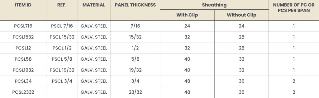 For quick, easy installation between plywood panels for roof sheathing or panelized construction .. provide structural support .. reduce normal plywood deflection between panels .. embossed dimples/built-in spacer type feature provide APA recommended 1/8″ gap.