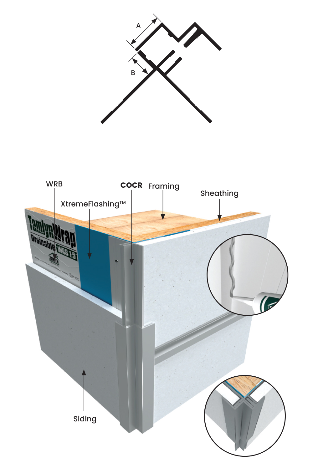 NOTE:ย Do not install XtremeTrimยฎ Reveal Open Outside Corner on horizontal applications where the exterior flange can catch/hold water.