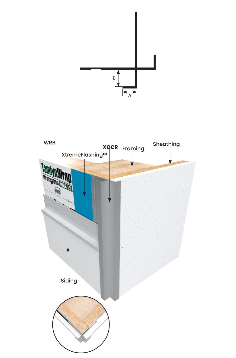 NOTE:ย Do not install XtremeTrimยฎ Reveal Open Outside Corner on horizontal applications where the exterior flange can catch/hold water.