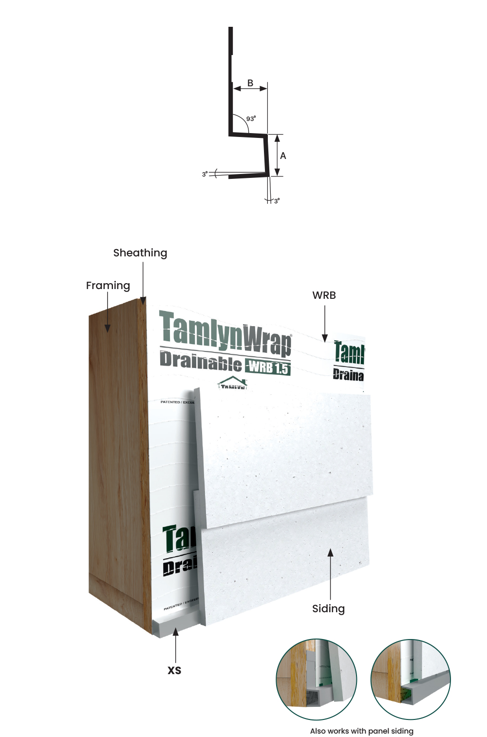 Starter/bottom course for both vertical and lap siding. Provides ease-of-installation with correct angle.