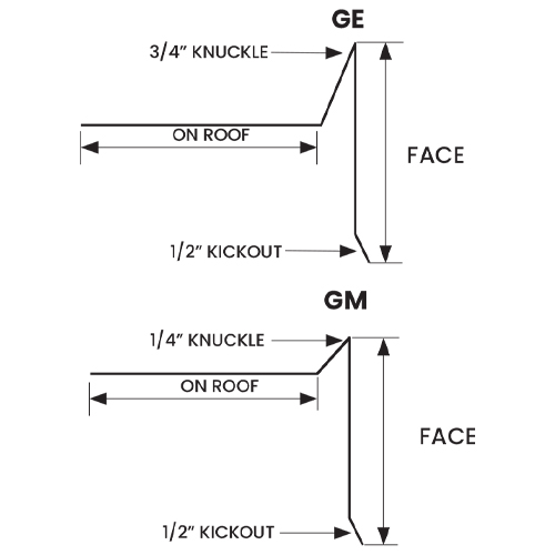 Deflects water away from fascia board. Has a 3/4โ knuckle for greater rigidity and to hide roof deck. Used with conventional gravel/flat roof applications. Other sizes available as special order.
