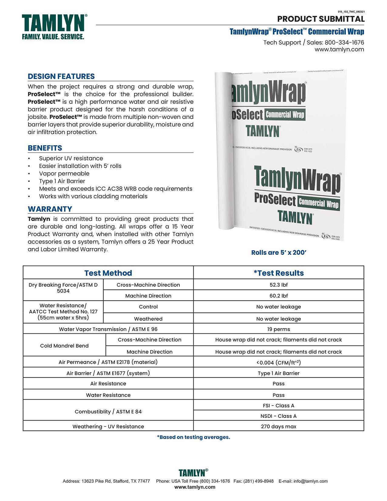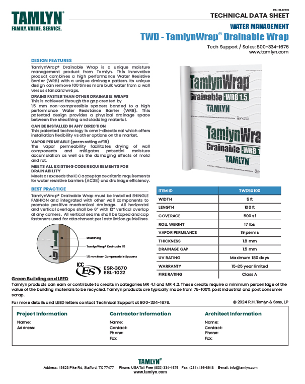 Ballpark Estates TamlynWrap Drainable 1.5 WRB