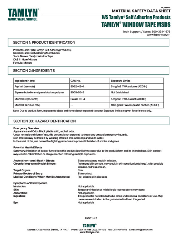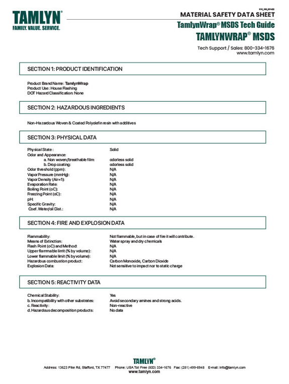 TamlynWrap Double Sided Seam Tape Safety Data Sheet